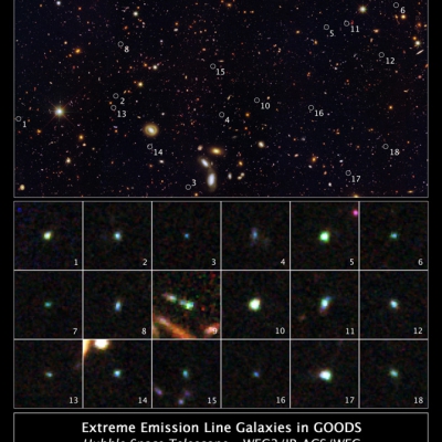 Используя ИК-камеру, космический телескоп НАСА Хаббл смог заглянуть в далекие рубежи вселенной на расстояние 9 миллиардов световых лет. Телескоп обнаружил скопление молодых карликовых галактик вблизи созвездия голубя и зайца, в которых происходит интенсивное звездообразование.