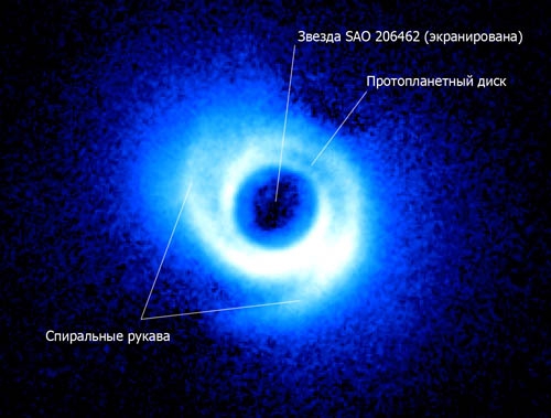 В протопланетном диске, окружающем далекую молодую звезду, впервые обнаружены спиральные рукава. Возможно, они говорят о том, что в этом облаке газа и пыли скрываются уже начавшие формироваться, но еще невидимые планеты. Проведенное учеными компьютерное моделирование показало, что именно воздействие гравитации юных планет...